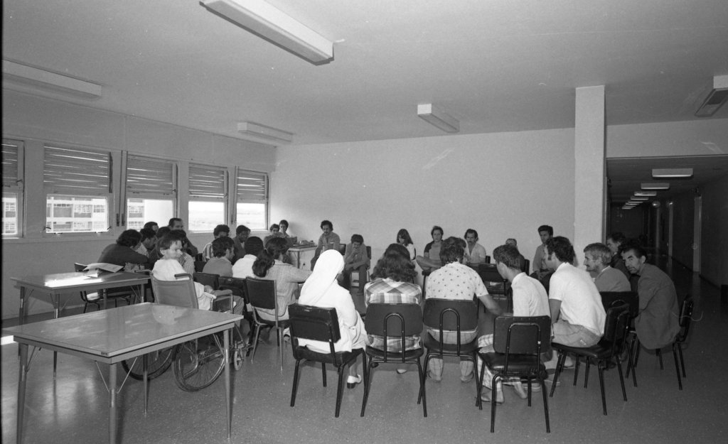 Pacientes reunidos em grupos operativos para soluções coletivas para os desafios da unidade | Fonte: Departamento de Arquivo Geral da UFSM – fotógrafo não identificado