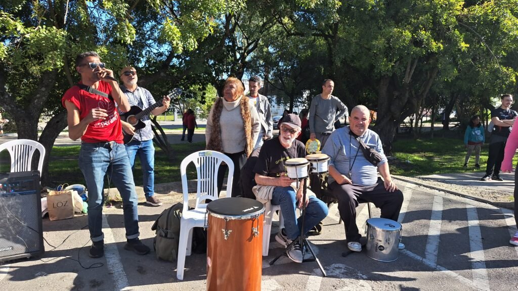 Clarissa Cardoso: Nós formamos várias parcerias. Quando a gente fez a reunião de apresentação do projeto, em 10 de março com o grupo de trabalho permanente da Secretaria de Cultura, chamamos as demais secretarias. Nós formamos várias parcerias como o Fórum Gaúcho de Enfermagem, o Coletivo de Mulheres que Ouvem Vozes, Associação de Usuários de Saúde Mental de Pelotas (AUSSMPE) e a Barraca da Saúde, que foi uma das que sempre pensamos em contemplar. A barraca é um projeto super importante, que leva orientações, informações para a comunidade, e tem a participação de estudantes, que são uma grande diferença na qualidade do cuidado, das ações. Então para nós é fundamental a participação deles, a gente quer que eles possam participar sempre que possível, quando as agendas forem compatíveis.