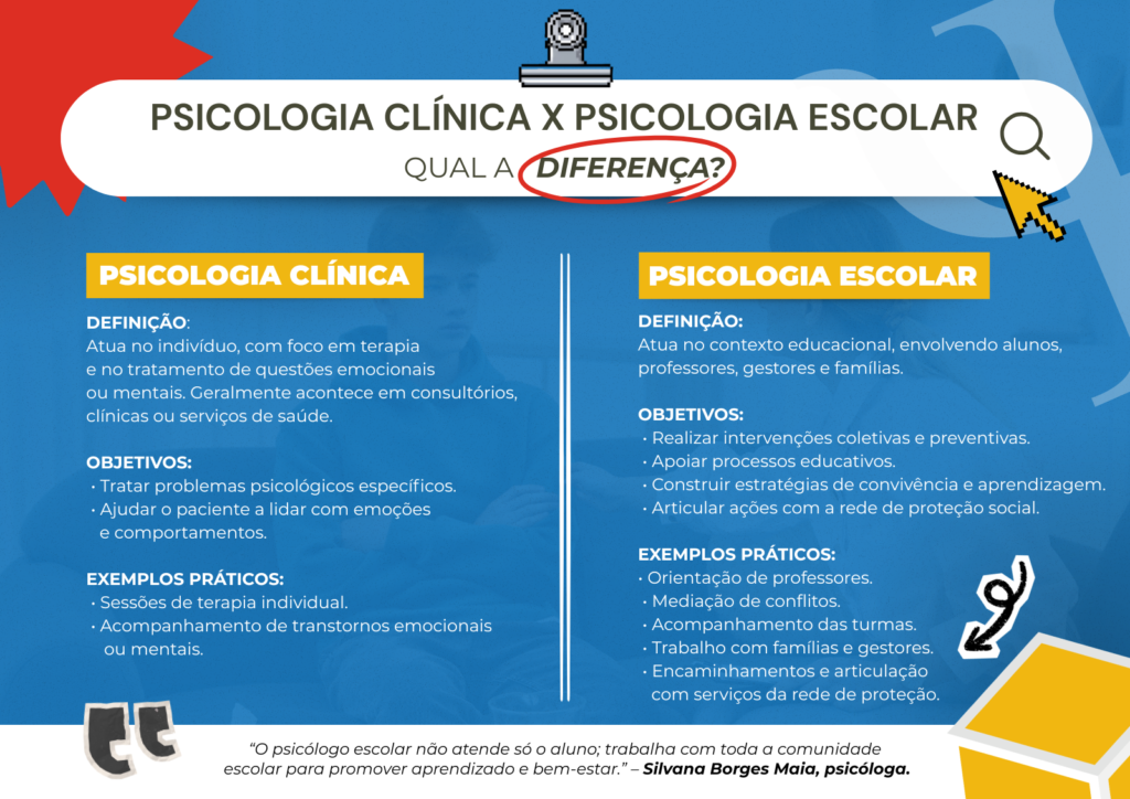 A formação acadêmica também pesa: durante décadas, os cursos de Psicologia priorizaram a área clínica, deixando a escola em segundo plano. De acordo com Silvana, a escola sempre foi vista como espaço de estágio, não de atuação efetiva, o que ajuda a explicar a confusão ainda presente em muitas redes públicas sobre o papel do psicólogo no ambiente escolar.